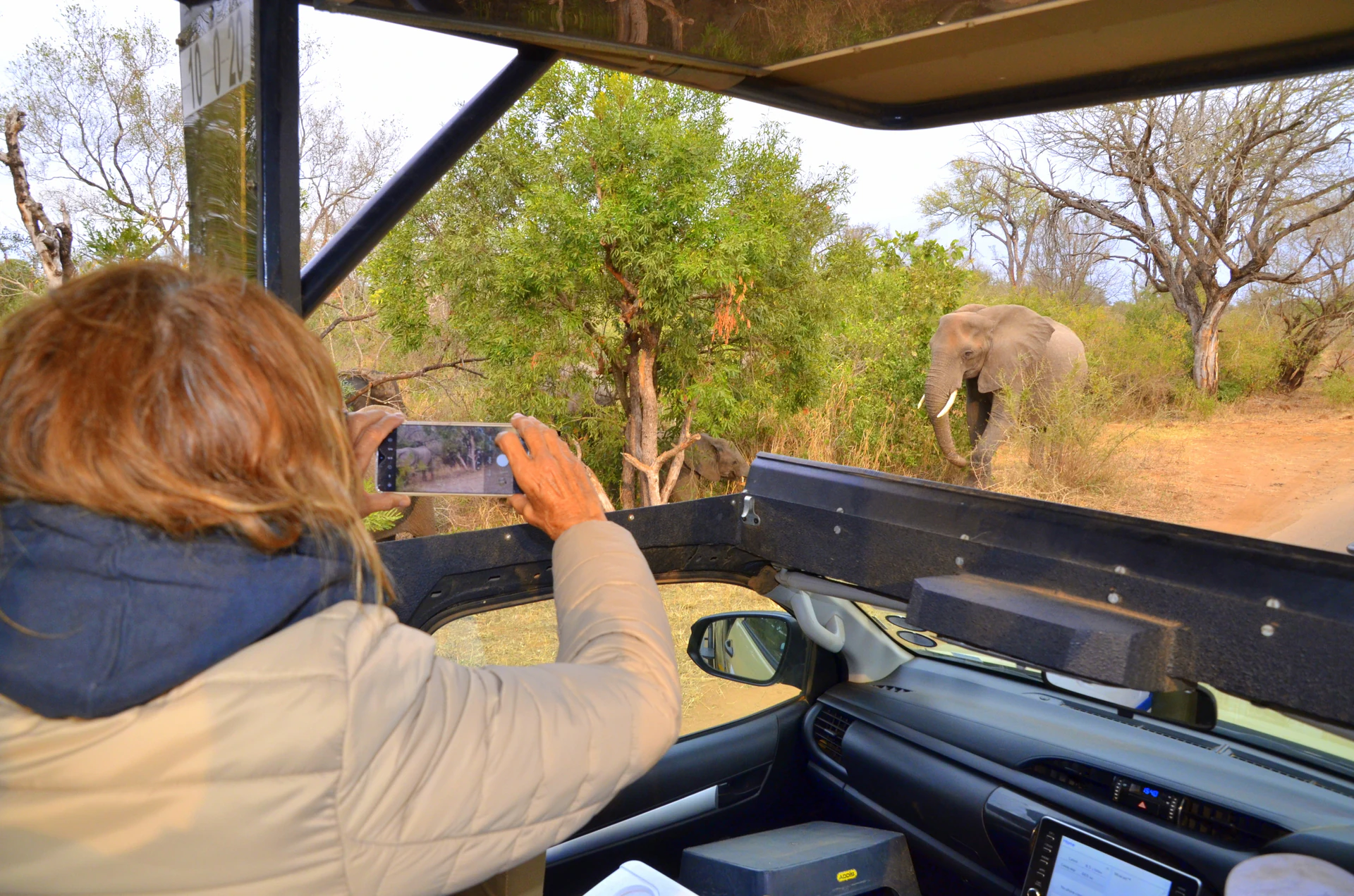 Inicio del safari guiado en vehículo abierto. Exploraremos el sur del Kruger, región con alta concentración de vida salvaje.